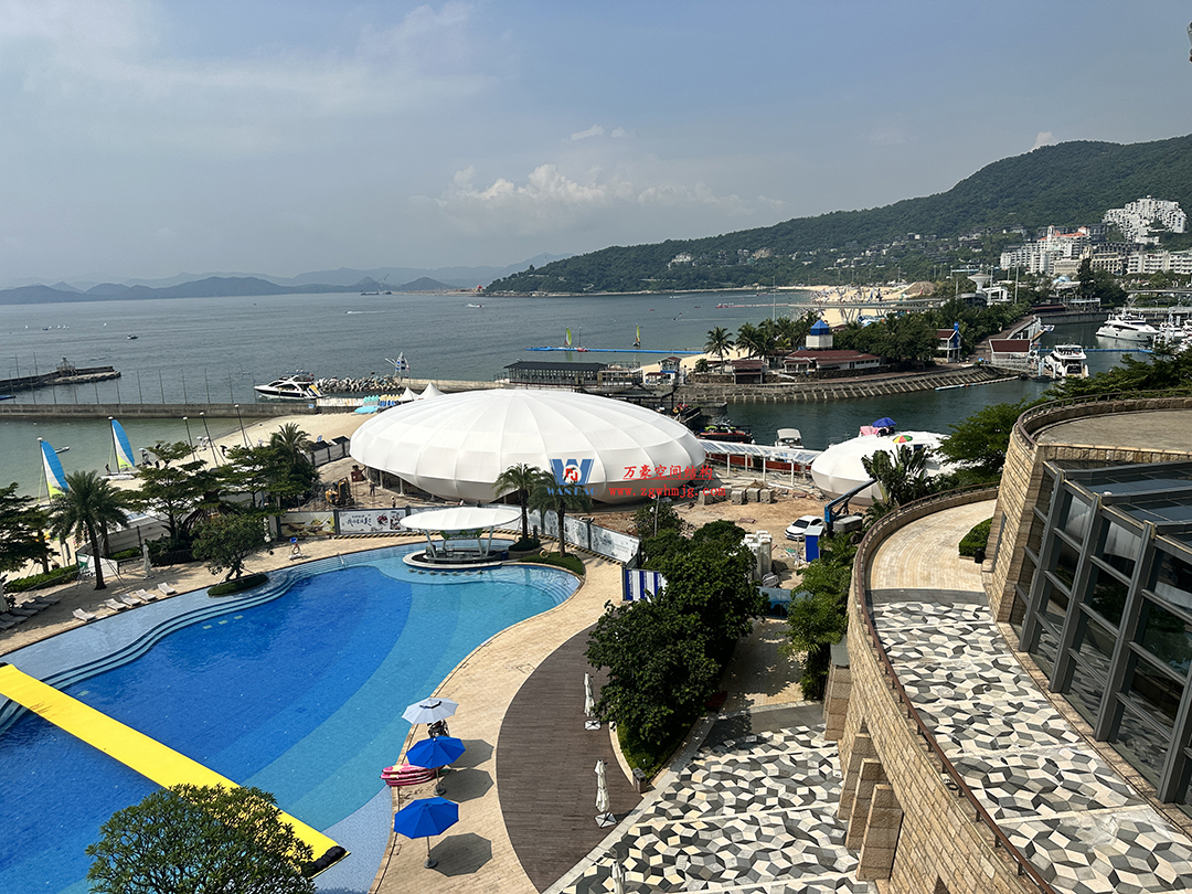 京基大梅沙酒店多功能活動(dòng)廳鋼膜結(jié)構(gòu)工程,該項(xiàng)目用鋼量約240噸,ETFE膜+PTFE膜展開面積約2834平米。
