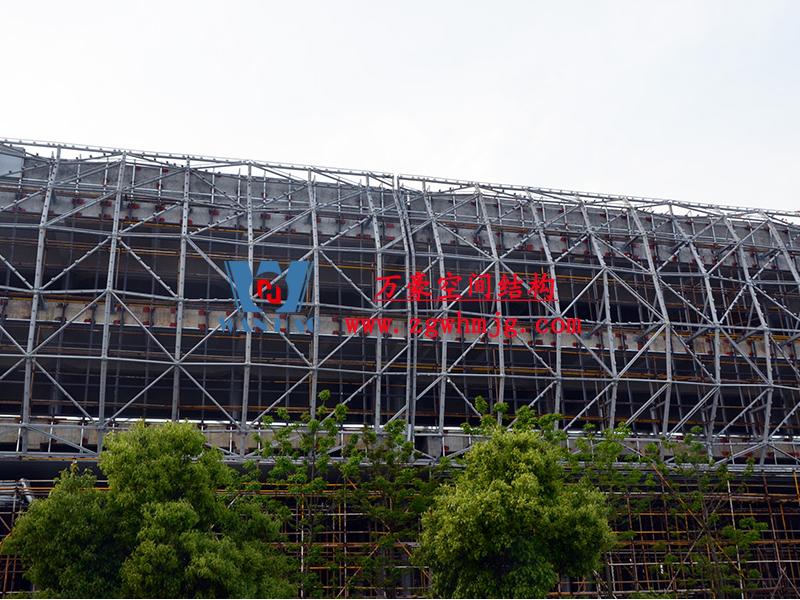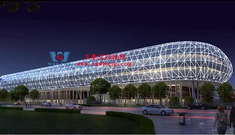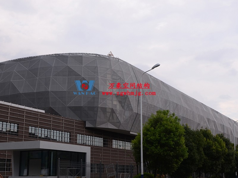 寧波菲仕展廳外立面網(wǎng)格膜結(jié)構(gòu)項(xiàng)目,方案由意大利著名建筑師設(shè)計(jì),設(shè)計(jì)靈感取鉆石之意。為了實(shí)現(xiàn)多變的設(shè)計(jì)效果,整個(gè)外立面采用了8000根形狀各異的鋼構(gòu)件,每根桿件單獨(dú)編號(hào)、定位,實(shí)施難度極大。外層使用PTFE網(wǎng)格膜,樹(shù)立了PTFE網(wǎng)格膜使用的新標(biāo)桿。用鋼量880噸,PTFE膜展開(kāi)面積12660平方。