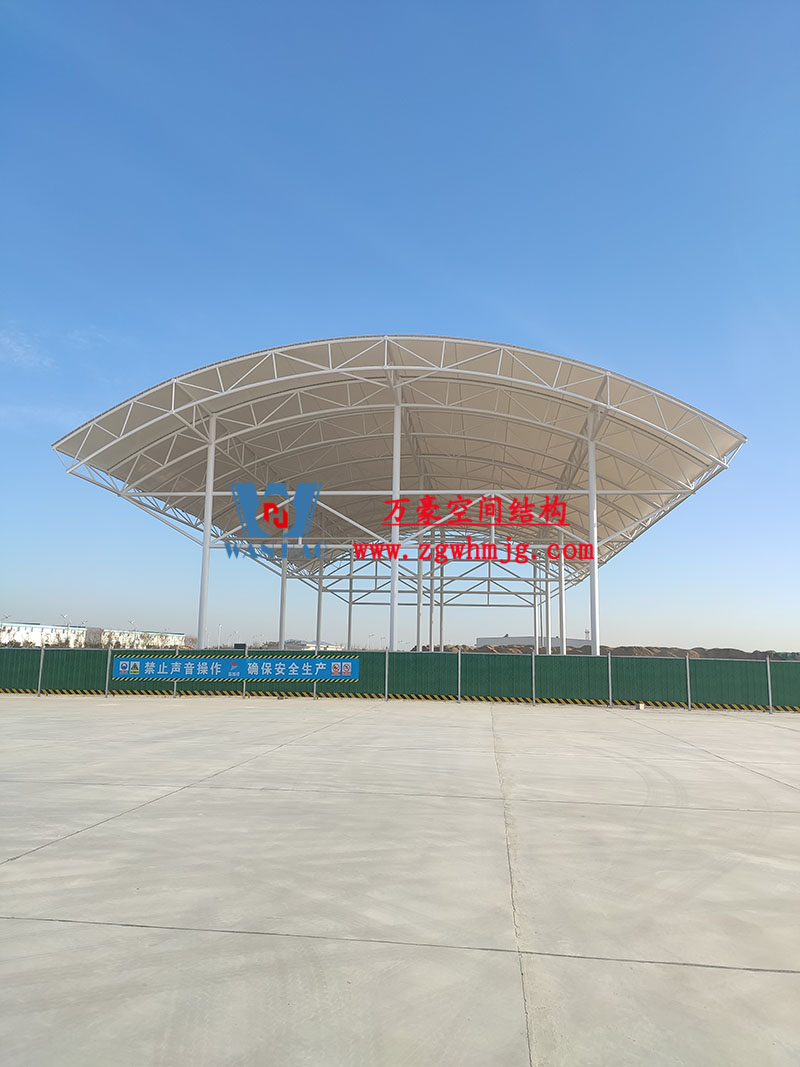 射陽(yáng)港港區(qū)國(guó)家一類(lèi)開(kāi)放口岸一關(guān)兩檢查驗(yàn)設(shè)施項(xiàng)目位于江蘇省鹽城市射陽(yáng)縣臨港工業(yè)園區(qū),用鋼量150噸,膜結(jié)構(gòu)展開(kāi)面積3000平米,由寧波萬(wàn)豪空間結(jié)構(gòu)工程有限公司承建。