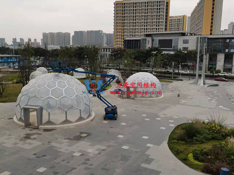 無線創(chuàng)智城市功能空間業(yè)態(tài)優(yōu)化五星集市etfe膜結構工程位于四川省成都市,由寧波萬豪空間結構工程有限公司承建。該項目用鋼量27噸,ETFE膜展開面積510平方米。