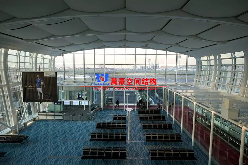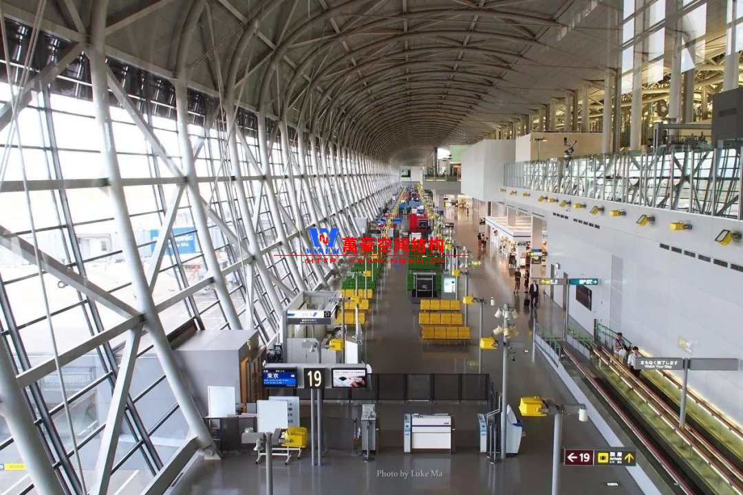 張弦梁和支承構(gòu)件的尺度處理的很好,單撐桿張弦梁顯得很有力度感(東京羽田機(jī)場(chǎng)/HND)