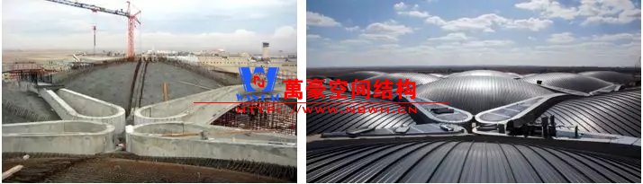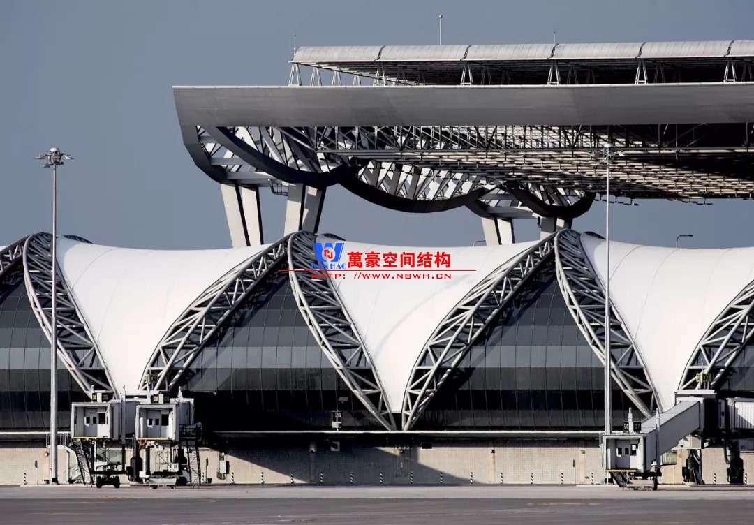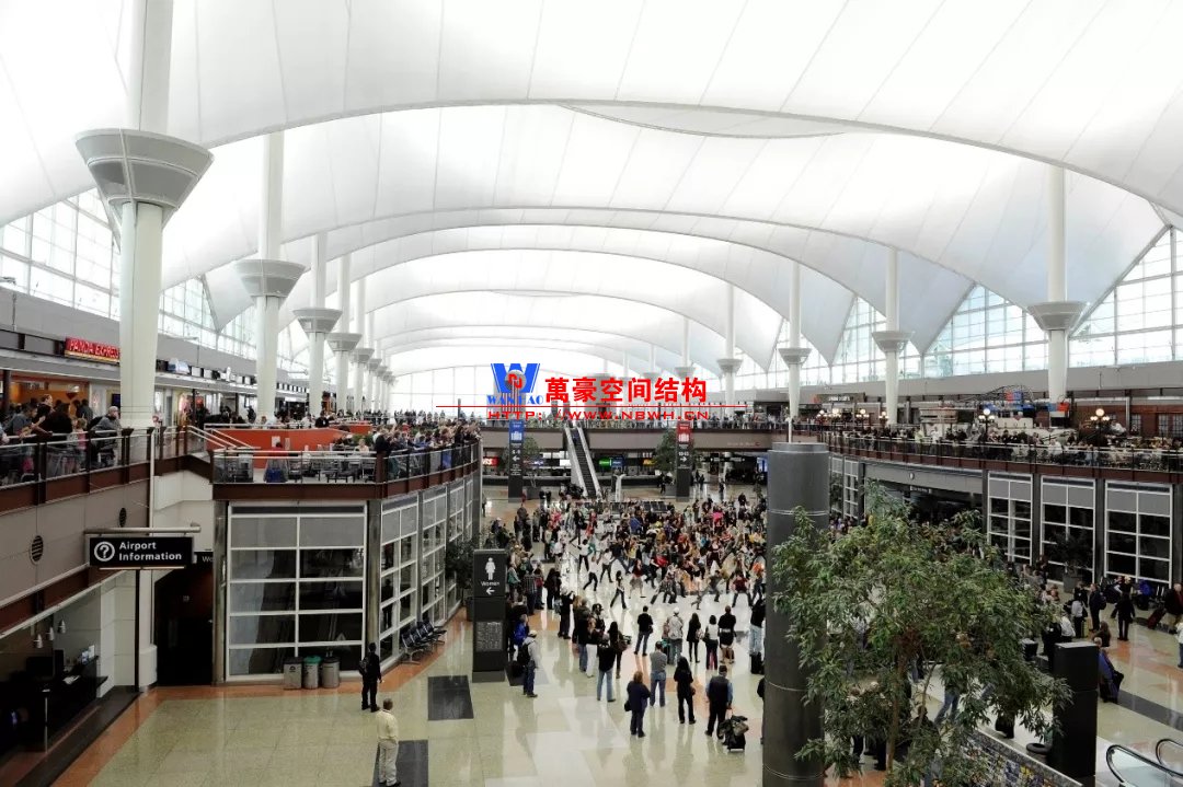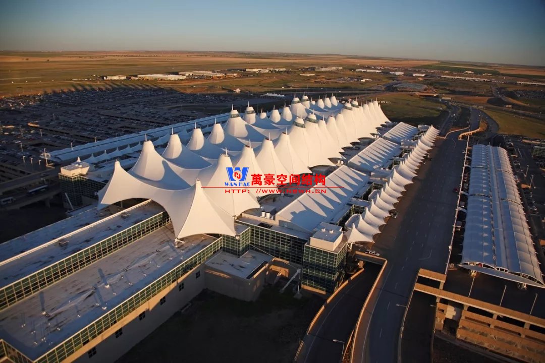 除了以上相對(duì)比較常見(jiàn)的結(jié)構(gòu)類(lèi)型,還有一些是不太常見(jiàn)的樣式,且基本上只此一例別無(wú)他家。如丹佛機(jī)場(chǎng)則采用了膜結(jié)構(gòu),潔白的膜層層疊疊與遠(yuǎn)處的雪山交相呼應(yīng),建筑效果很特別。那為何很少有機(jī)場(chǎng)大范圍采用膜結(jié)構(gòu)呢?可能和膜結(jié)構(gòu)的熱工性能和使用年限有關(guān)系,夏熱冬冷不節(jié)能。同時(shí)膜結(jié)構(gòu)對(duì)形態(tài)的適應(yīng)性比較差,需要特定的建筑樣式才能遷就膜結(jié)構(gòu),而不像鋼結(jié)構(gòu)基本能適應(yīng)任何建筑造型。因此建筑師如果想選擇膜結(jié)構(gòu),需要和結(jié)構(gòu)工程師在早期有更多的溝通。