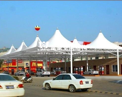 膜結構建筑因其獨特的藝術性,優(yōu)美的造型,濃郁的現(xiàn)代氣息,被廣泛運用到建筑領域的各種設施。加油站膜結構運用在加油站頂蓬上是再合理不過的選擇,因為加油站的頂篷是公路或地區(qū)設置名稱標牌的主要位置,是公路或地區(qū)的重要標志;大跨度的膜結構在這種場合下的運用,能充分體現(xiàn)膜結構的主要特點,并有較好的標識招攬效果。為相關的道路或區(qū)域起到畫龍點睛的作用。
