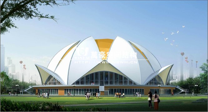 膜結(jié)構(gòu)體育館張力結(jié)構(gòu)自重小的原因在于它依靠預(yù)應(yīng)力形態(tài)而非材料來保持結(jié)構(gòu)的穩(wěn)定性。