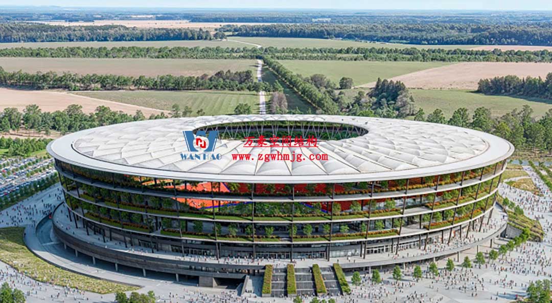 項目設(shè)計以“花園式”為核心理念,將塞爾維亞的自然地貌、文化傳統(tǒng)與現(xiàn)代建筑科技深度融合,兼具地域特色與國際視野,打造出全球首個“花園足球場”。球場主體結(jié)構(gòu)采用四環(huán)型設(shè)計,由鋼索支撐,四個環(huán)圍繞球場中心,形成獨特的視覺效果。球場內(nèi)部三個樓層均被樹木和灌木叢覆蓋,營造出未來主義花園的外觀。這一設(shè)計不僅提升了球場的觀賞性和環(huán)保性,還為球迷提供了更為舒適、自然的觀賽環(huán)境。