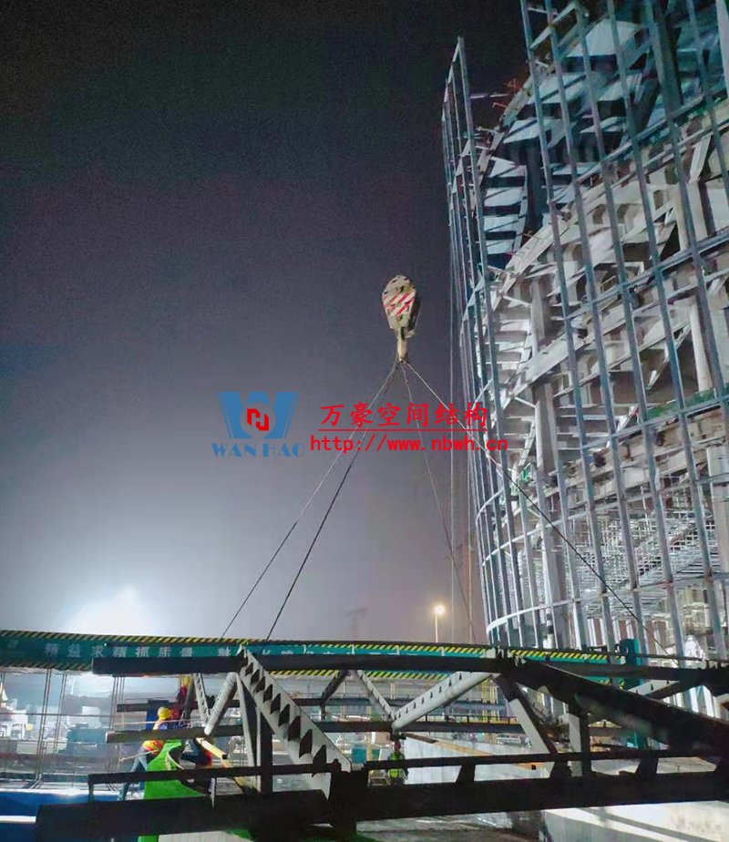 本項(xiàng)目工期緊,交叉施工多,施工難度巨大,桿件規(guī)格尺寸多樣化,長短不一,現(xiàn)場拼裝精度要求極高,為最大限度的保證產(chǎn)品外觀效果及有效控制施工質(zhì)量,我們配置了專業(yè)技術(shù)人員對現(xiàn)場實(shí)時測量、放樣及調(diào)整誤差。為響應(yīng)建設(shè)單位工期要求,我司日以繼夜,不計(jì)成本投入大量人力物力進(jìn)行全面展開現(xiàn)場拼裝及吊裝工作,為客戶提供優(yōu)質(zhì)的成品與服務(wù)始終是我們?nèi)f豪人持之以恒的目標(biāo),我們始終在踐行。